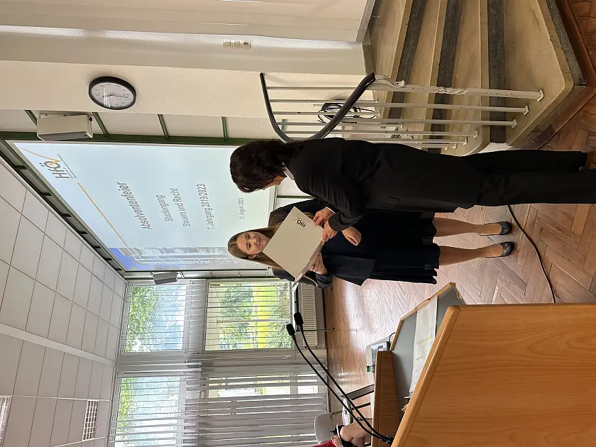 Dank der Unterstützung des Vereins zur Förderung der Hochschule e. V. konnten auch in diesem Jahr die besten Gesamtleistungen in diesem Studiengang gewürdigt werden. Ausgezeichnet wurden Lara Dietrich und Vivien Behrmann, die ihr Studium mit beeindruckenden Studienergebnissen abgeschlossen haben.
