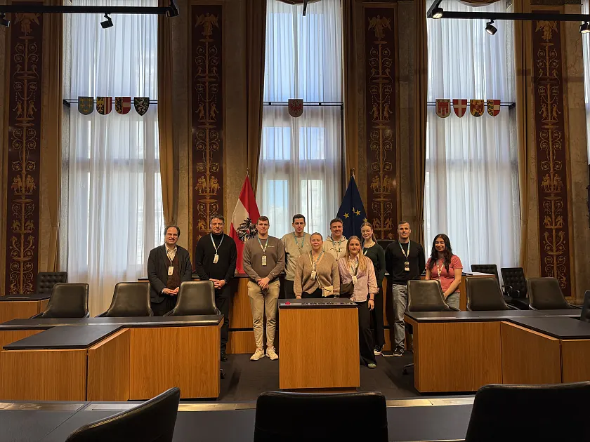 Im Rahmen einer dreitägigen Studienfahrt reisten Studierende des Jahrgangs 2022 des Studiengangs „Steuern und Recht“ gemeinsam mit dem Studiengangsleiter, Prof. Dr. Asche, sowie Prof. Dr. Klein vom 11. bis 13. März 2026 nach Wien.